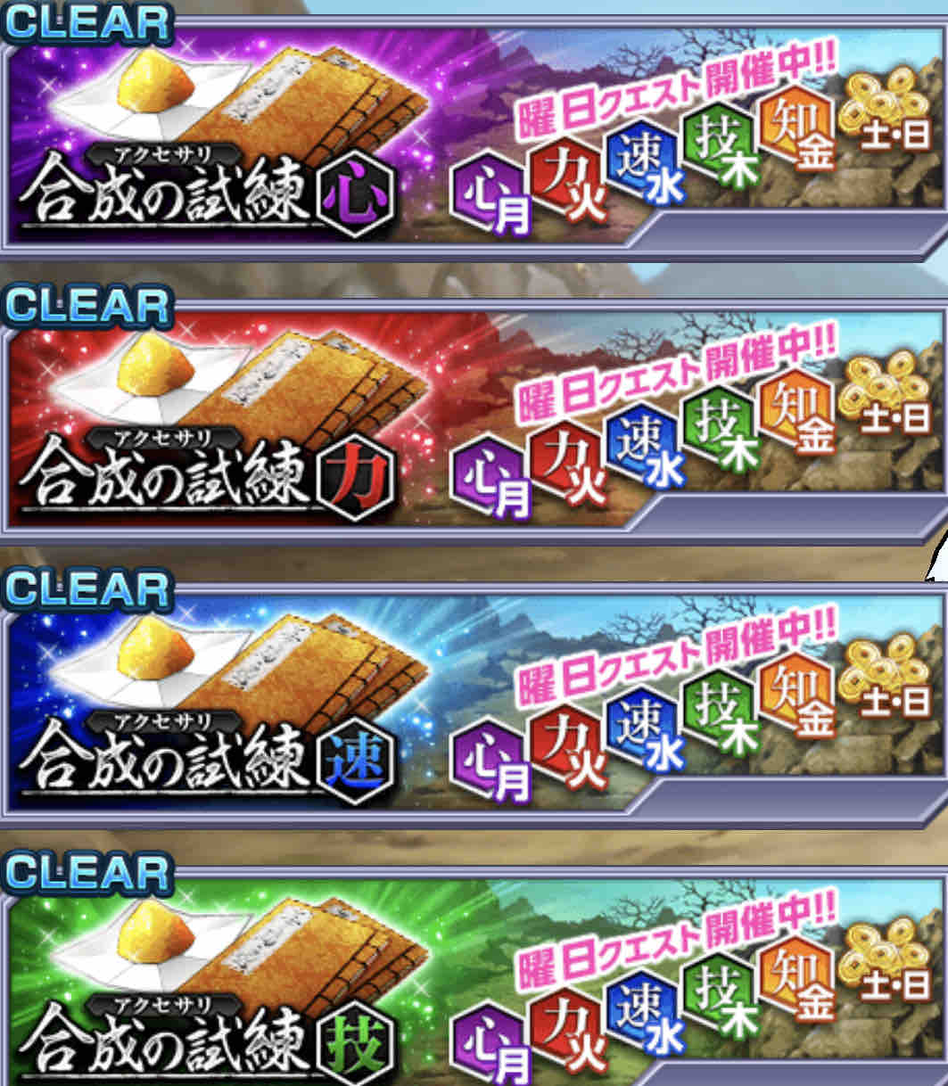 アクセサリ2次抽選に必要な筆、属性限定のアクセチケ、経験石、各属性の雫などが手に入る。こちら辺りからクリアにはアクセサリ、リンク、継承が必要となってくる。