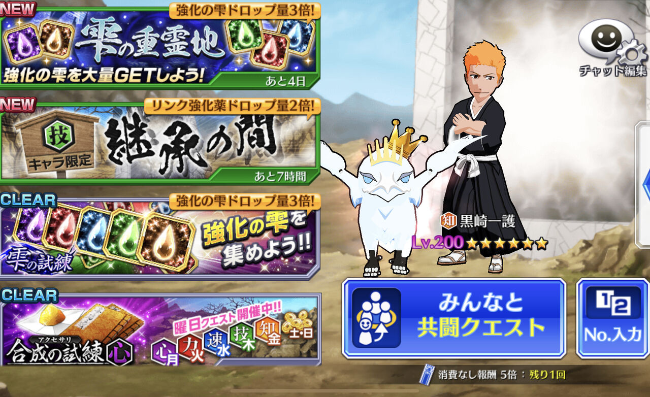 道中の雑魚も固く、必殺レベルが1でも霊圧開眼を10にして、合計霊圧3000超は欲しいところ。水着雛森の場合は通常攻撃特化キャラの為、合計攻撃3000は欲しい。通常攻撃特化の水着雛森以外は、転神体の装備が必須。