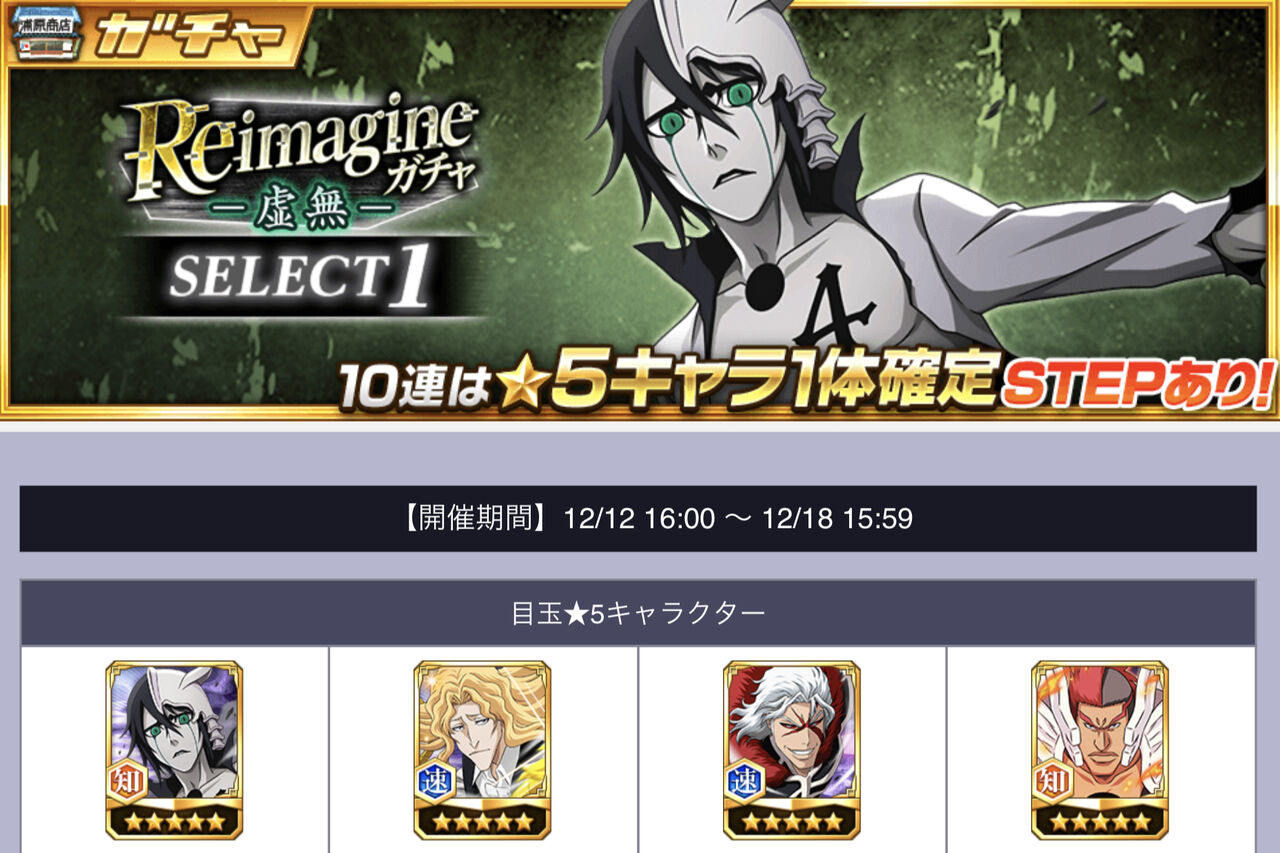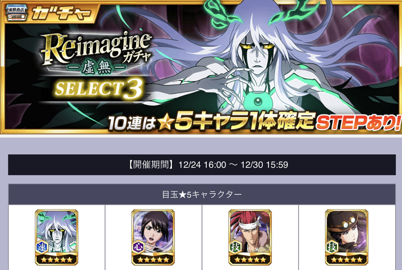 新ガチャ「Reimagineガチャ-虚無-」に関する情報です