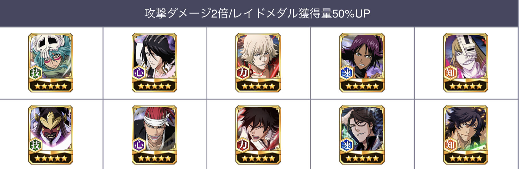 ですが、まずはレイドメダルを集めましょう。多くのレイドメダルを集めるには「ボーナスキャラ」が助けとなります。今回のボーナスキャラは以下の通りです