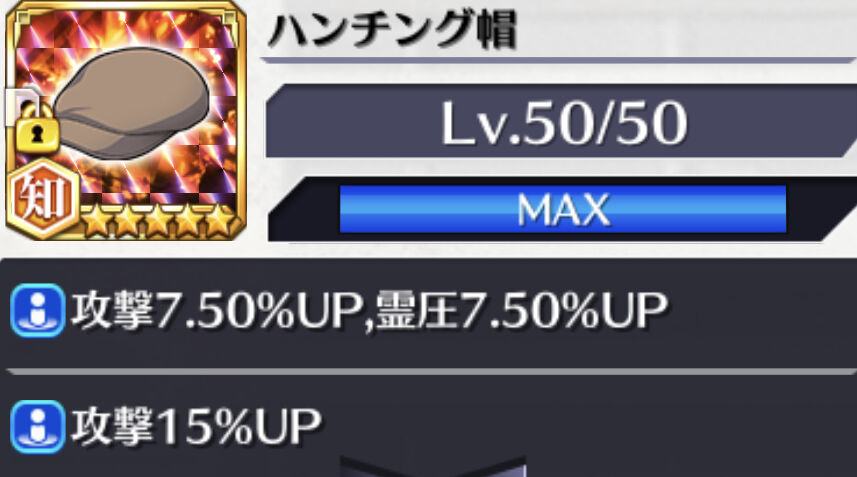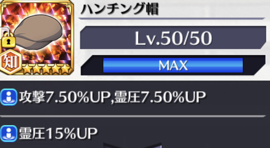 各属性の強攻撃特化キャラ専用として【転神体】【強壮剤】【ハンチング帽】などに、それぞれに二次抽選「霊圧30%」をつけておくと、火力は爆上がりしますよ