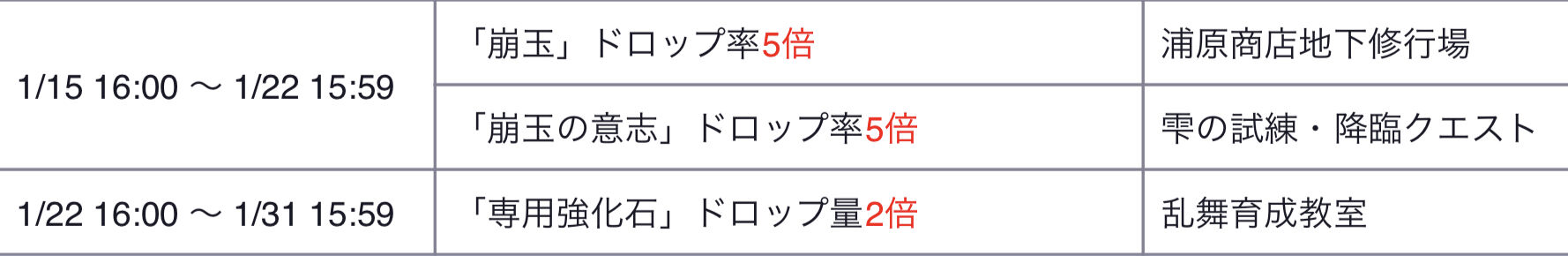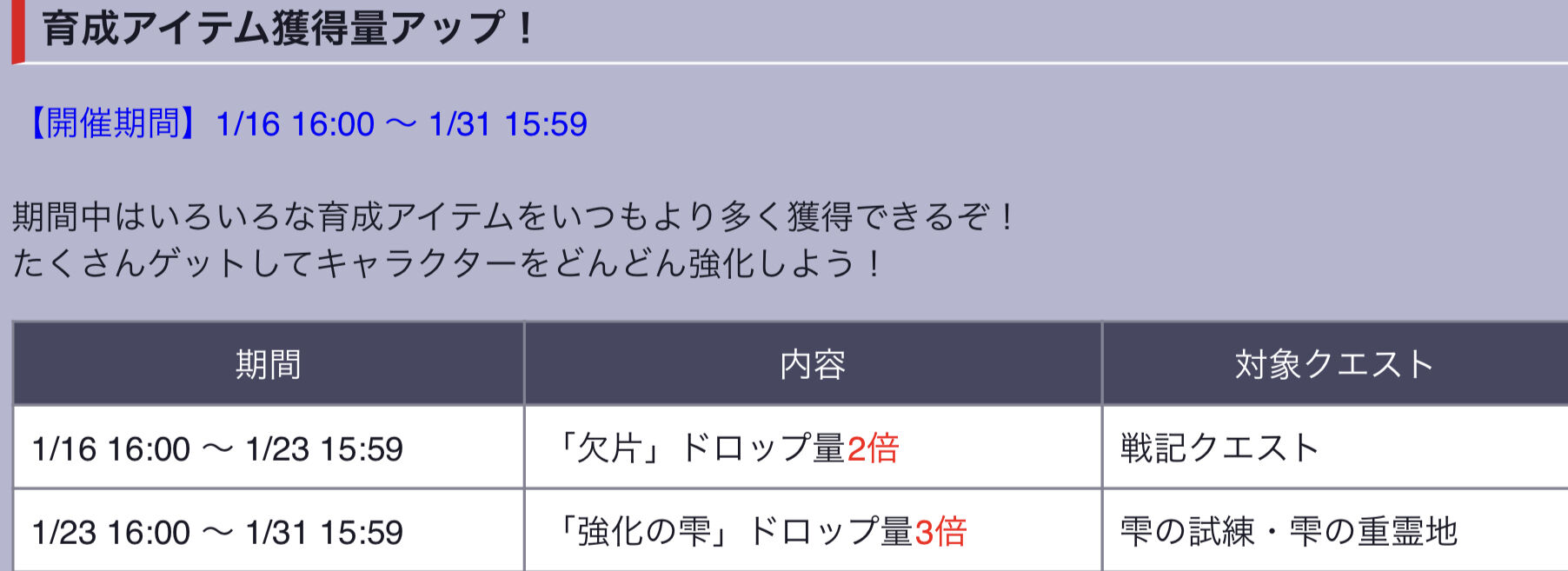 1/16 16:00-1/23 15:59までの戦記クエスト「欠片ドロップ率2倍」ですね。