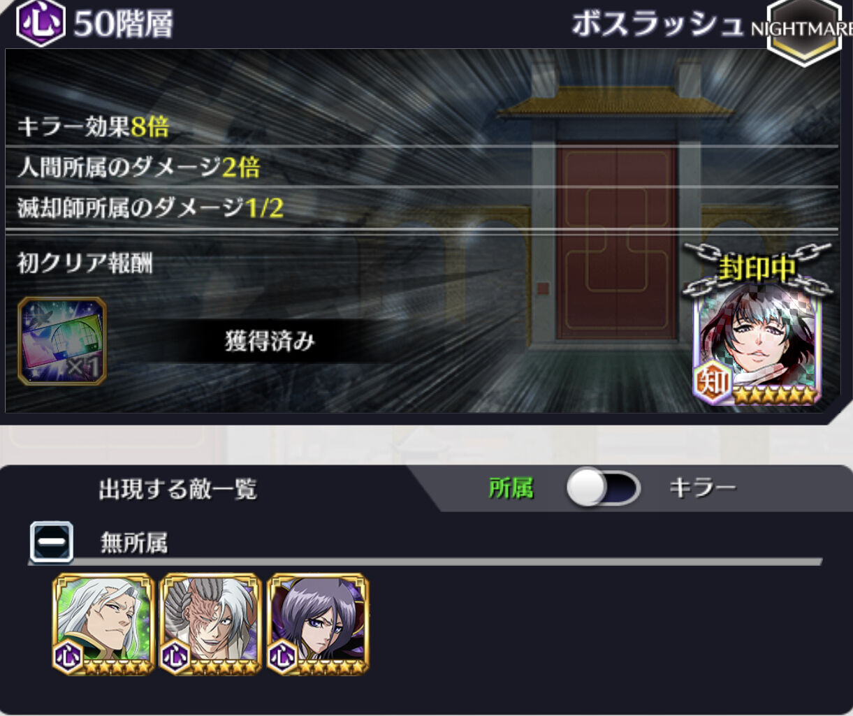キラー効果3倍/死神所属のダメージ2倍/隊長所属のダメージ1/2