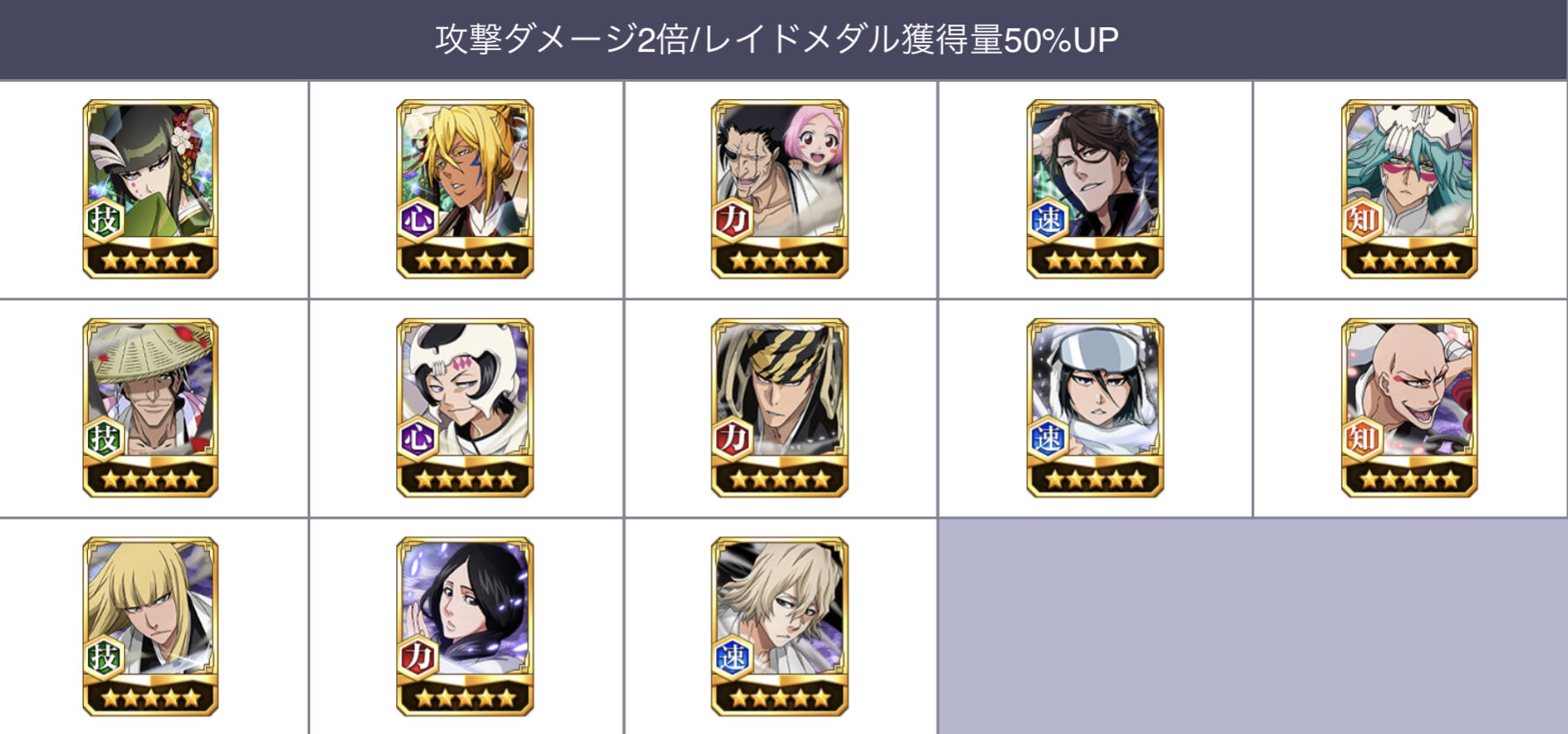 その為、山本元柳斎重國(千年血戦篇リメイク)、ウルキオラ(Special anew)などの超火力キャラで、ボナキャラを意識せずガンガン回数を重ねることをお勧めします。