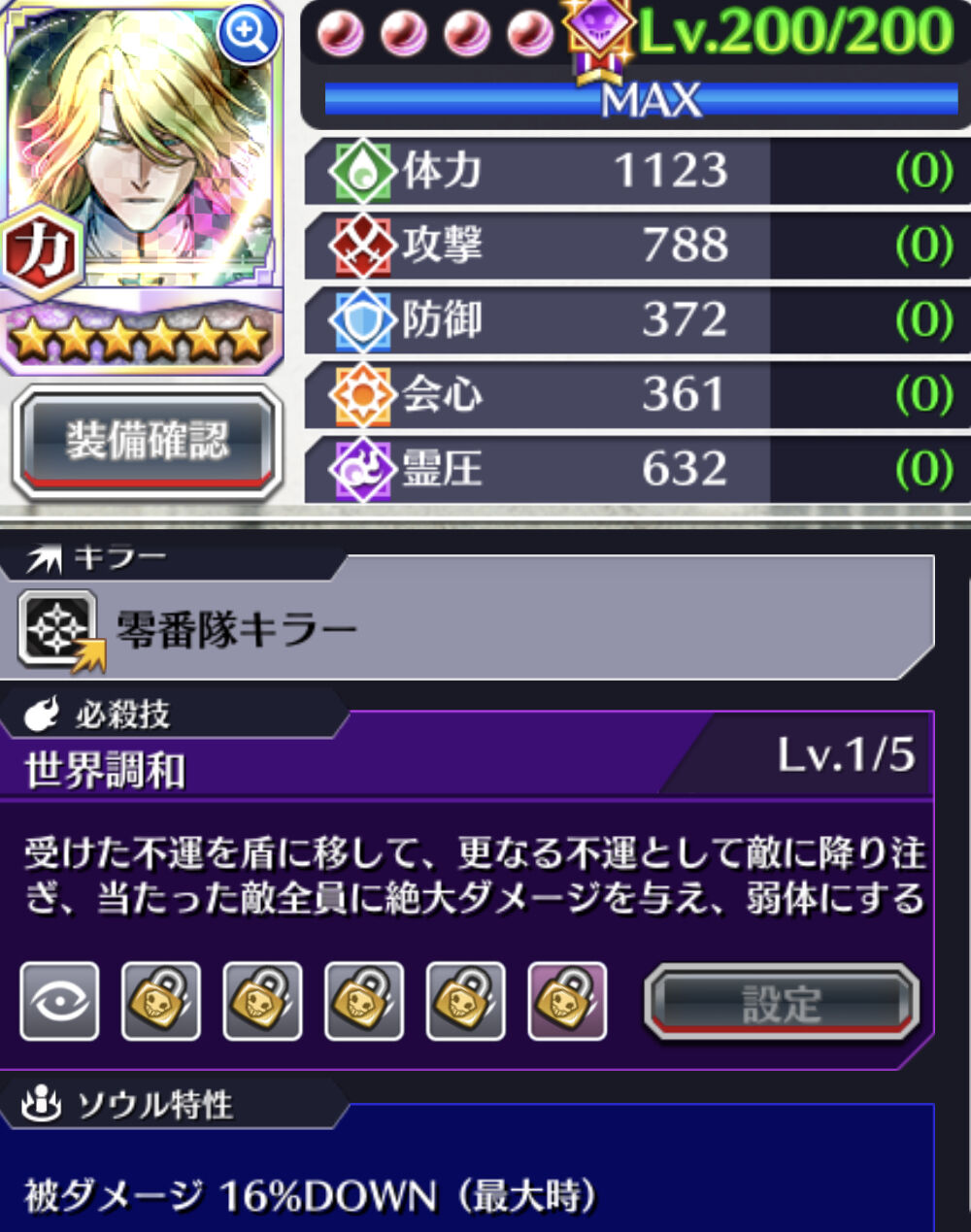 【開眼タイプ2】1防御 2体力 3攻撃 4会心 5霊圧