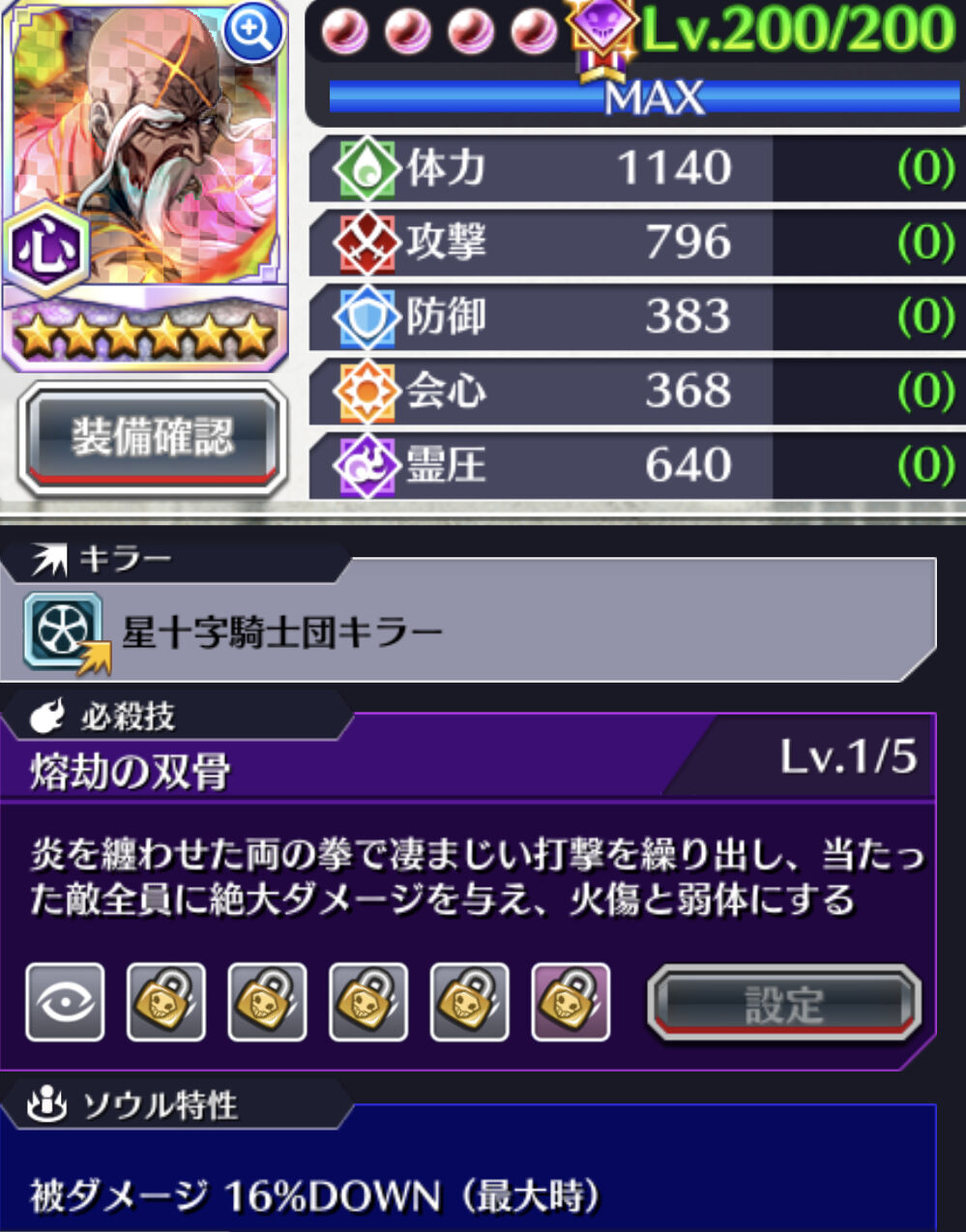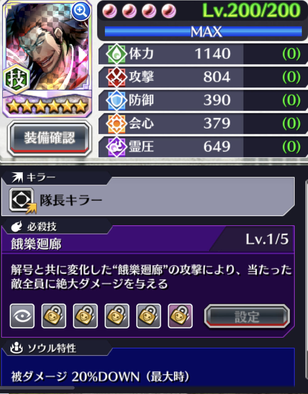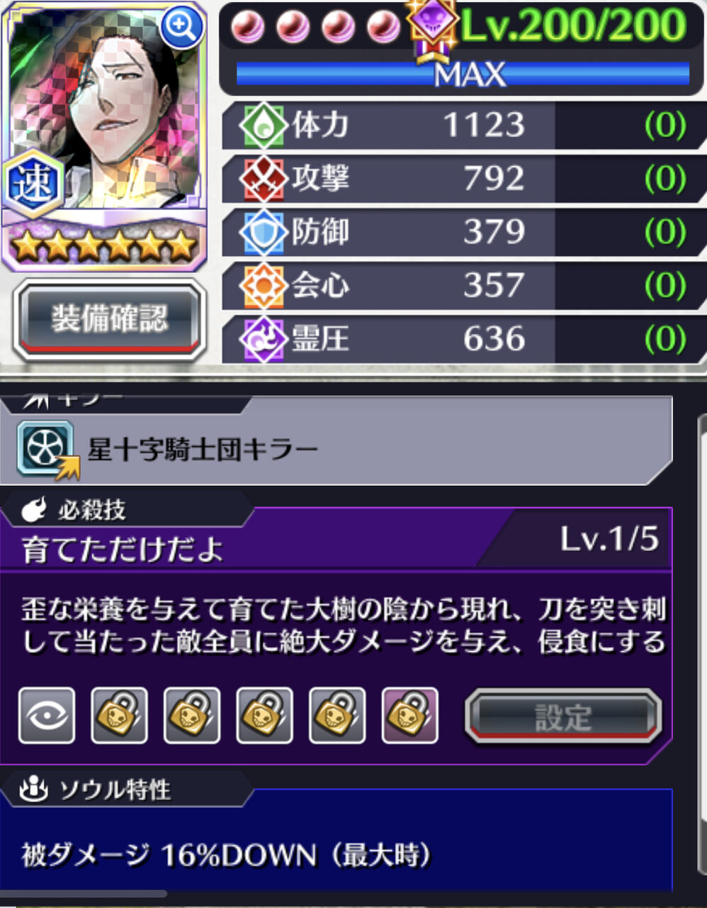 【開眼タイプ1】1防御 2体力 3攻撃 4会心 5霊圧