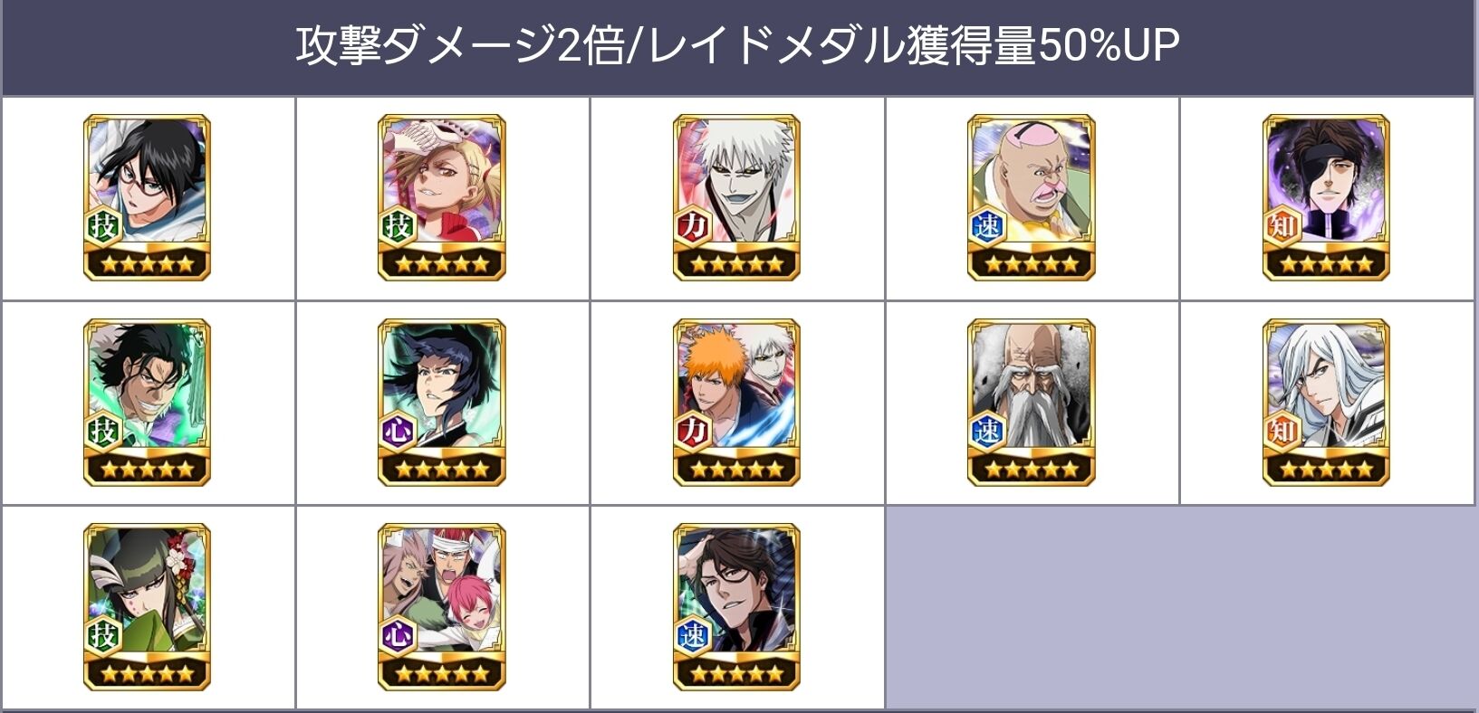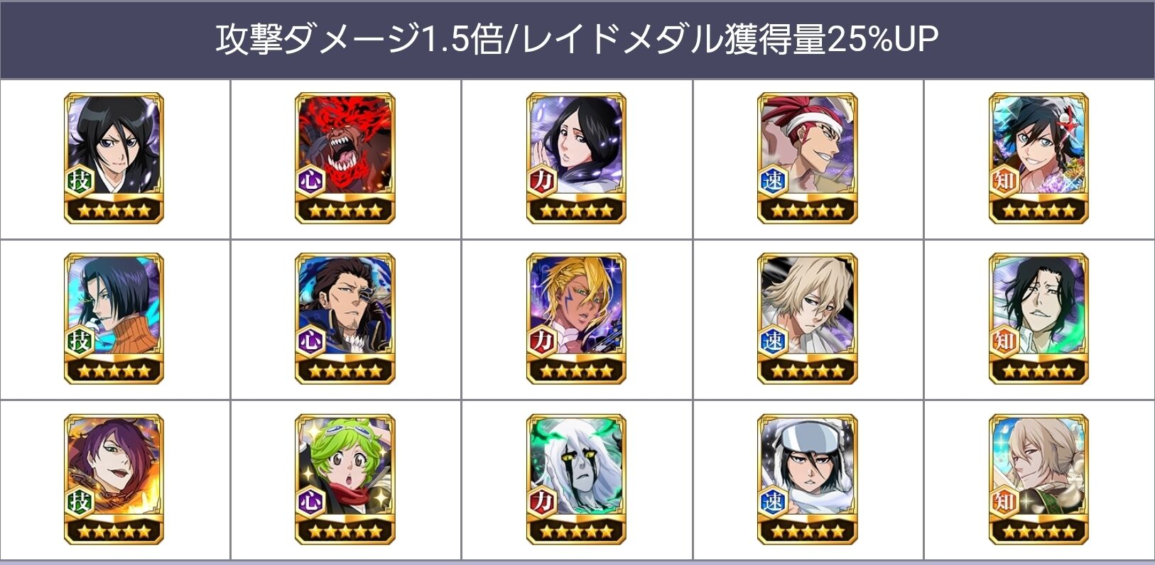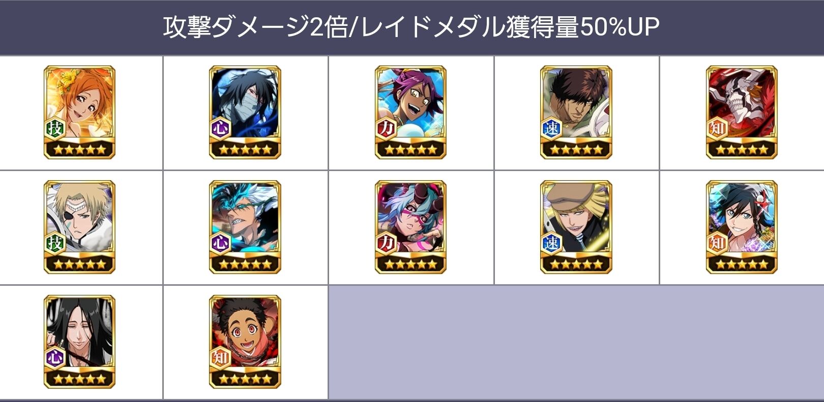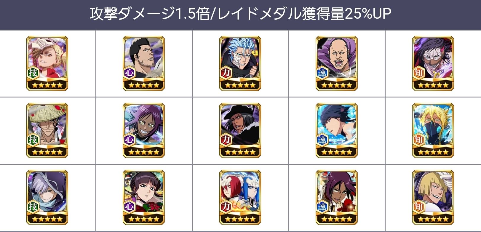 力属性 卯ノ花烈、ハリベル(ハロウィン)、ウルキオラ(3周年)