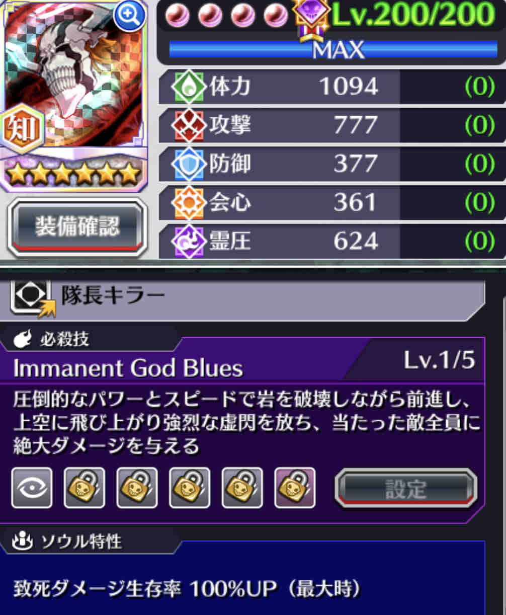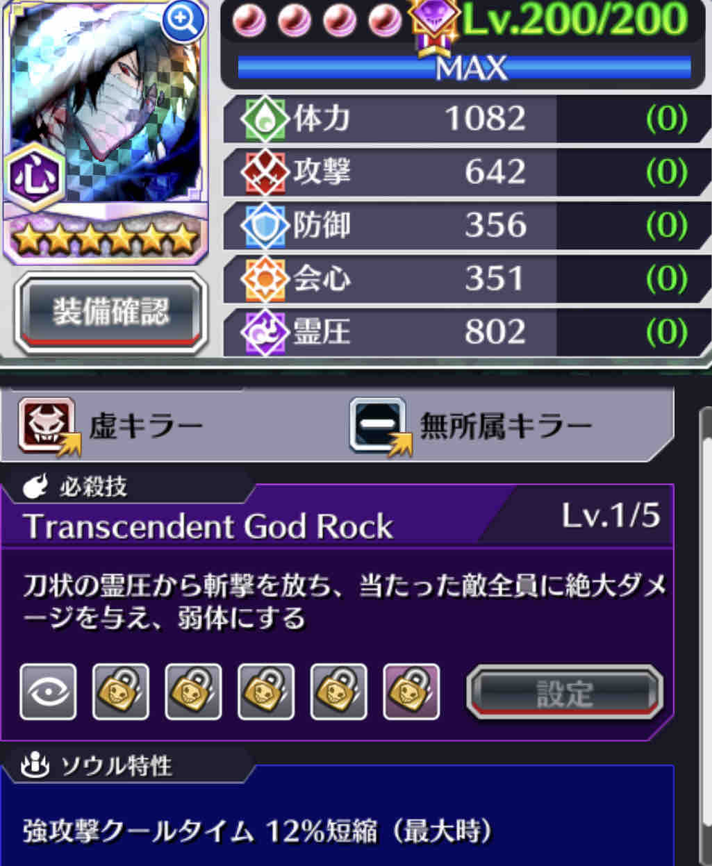 開眼順 1攻撃 2会心 3体力 4防御 5霊圧