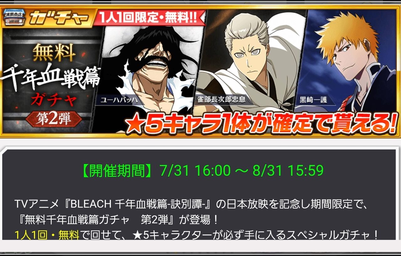 「無料・千年血戦篇ガチャ 第2弾」
