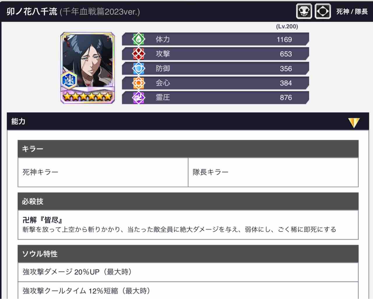 ランクS【速属性】卯ノ花八千流(千年血戦篇/2023)