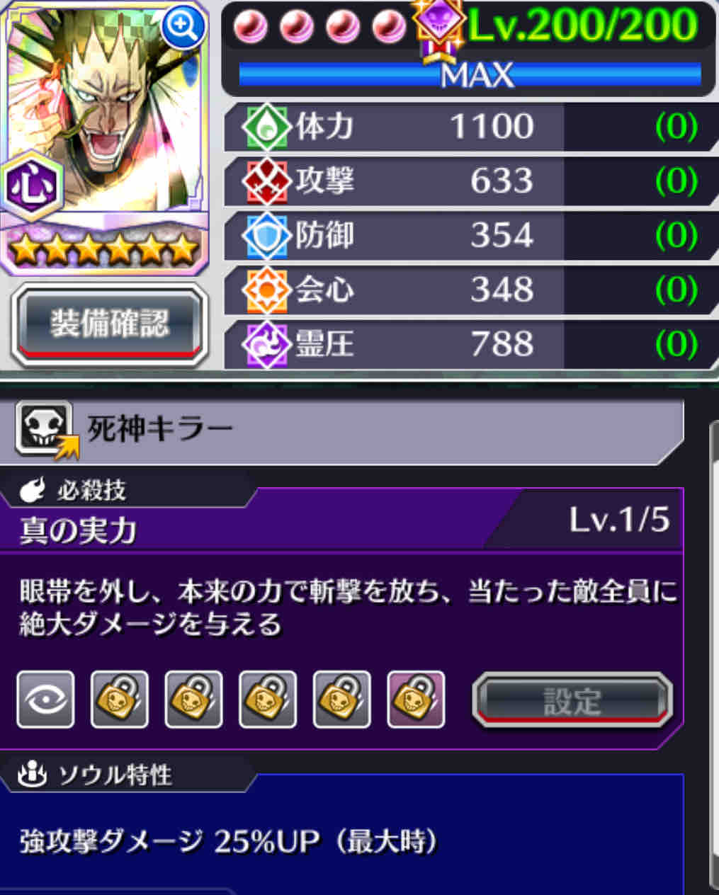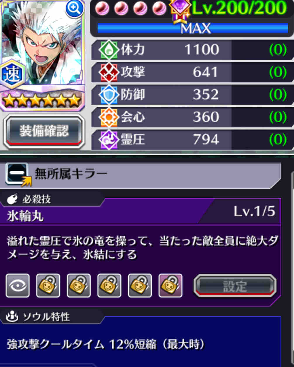 開眼順 1攻撃 2会心 3体力 4防御 5霊圧