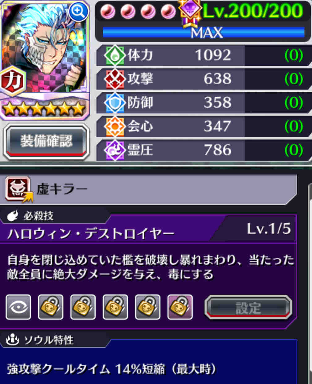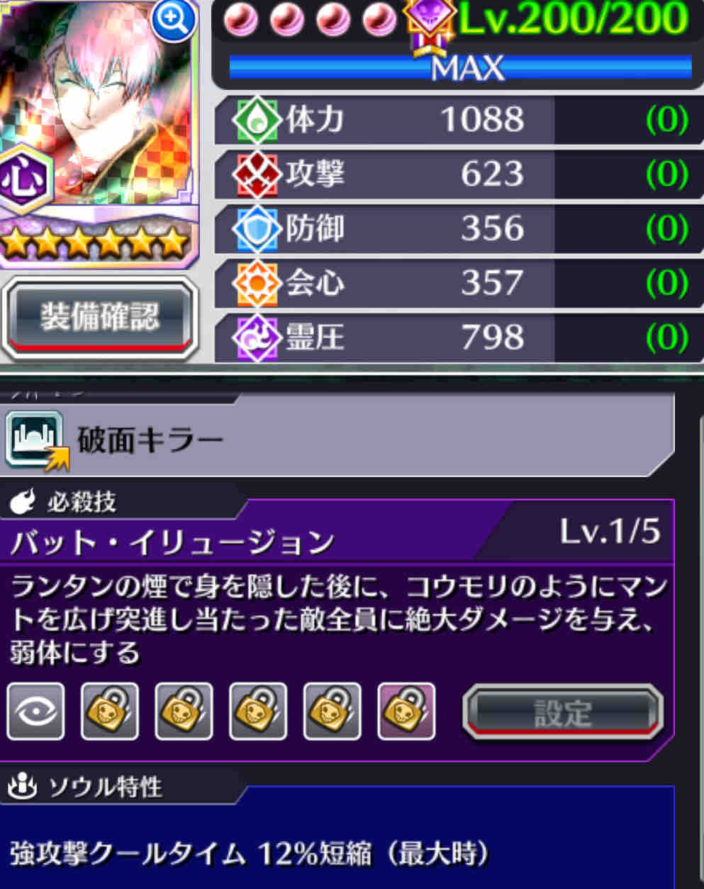 開眼順 1攻撃 2防御 3体力 4霊圧 5会心(※)