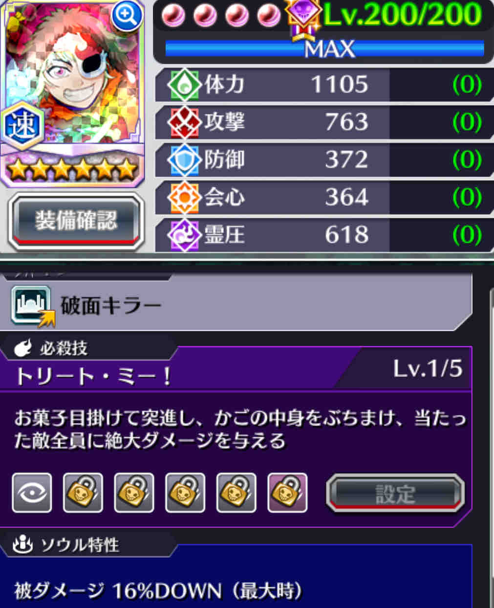 開眼順 1霊圧 2会心 3攻撃 4体力 5防御