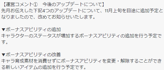 ボーナスアビリティの追加を行う予定です。