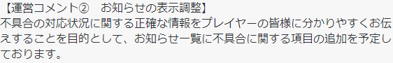 お知らせ一覧に不具合に関する項目の追加を予定しております。