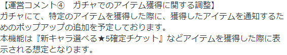 本昨日は「新キャラ選べる★5確定チケット」など