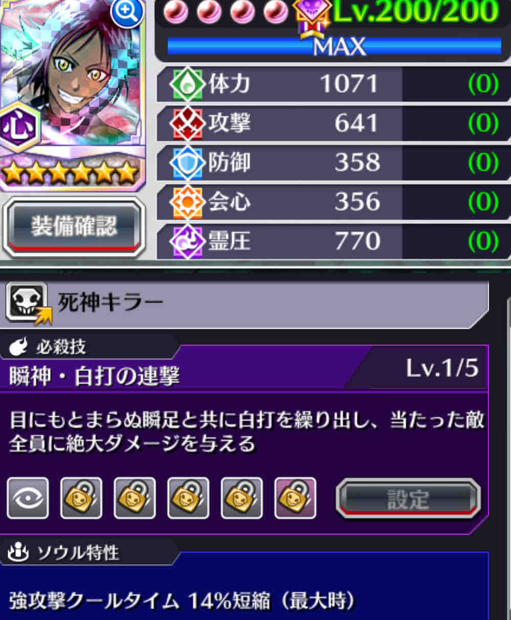 戦記クエストにおいてのボナキャラ。雛森桃の強攻撃2が回復なので、戦記クエストでは京楽さんをメインで使っています。転生アビリティが火力の底上げになっている点で、さらに戦記クエストが楽にクリアできると思います。