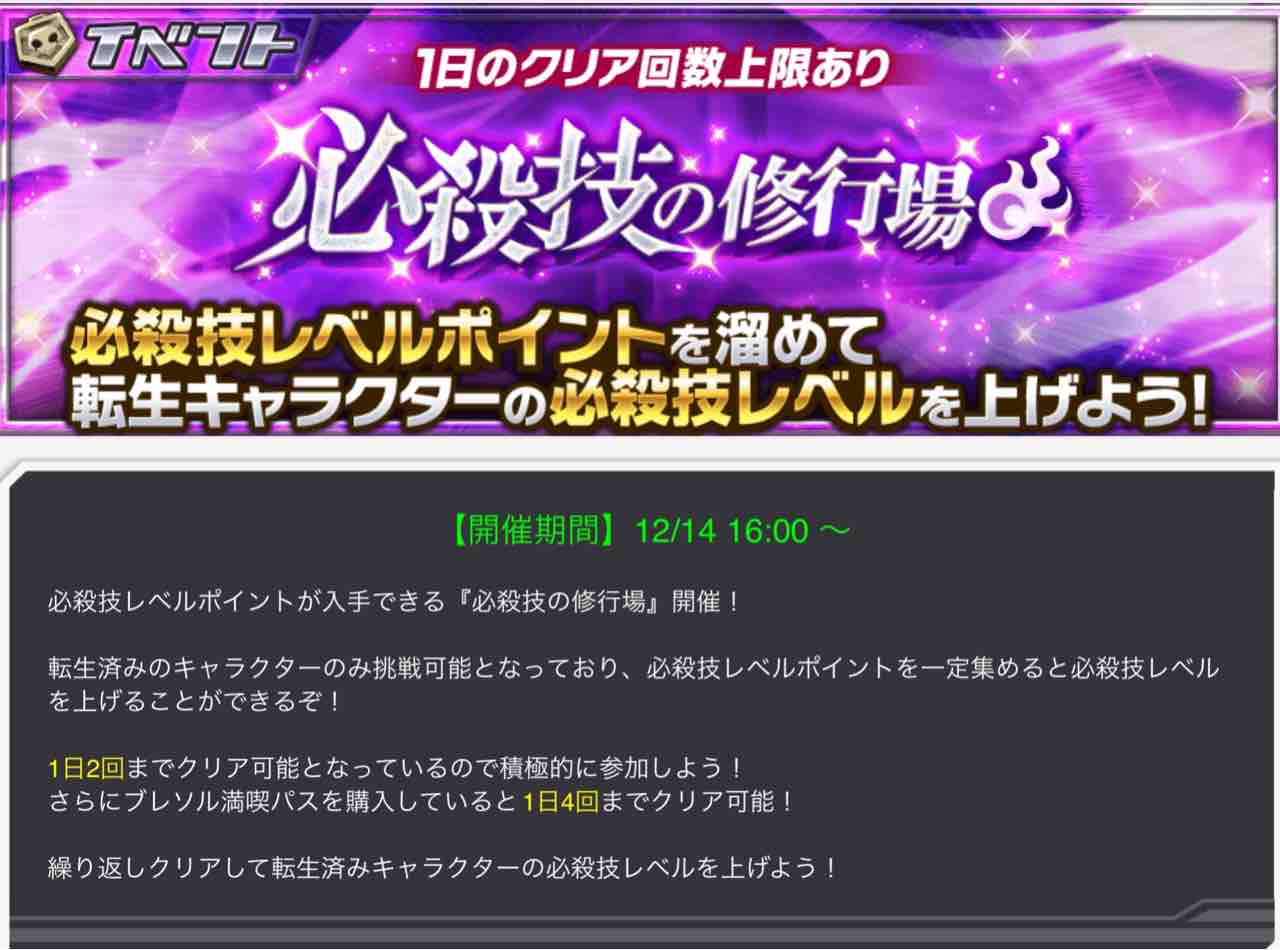 ソロイベント「必殺技の修行場」が実装されました。