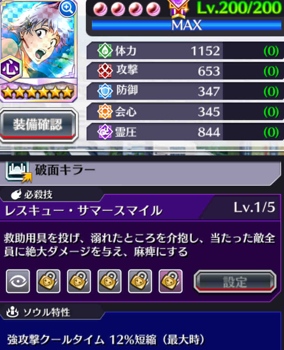 必殺技レベル5 ①霊圧 ②会心 ③攻撃 ④体力 ⑤防御