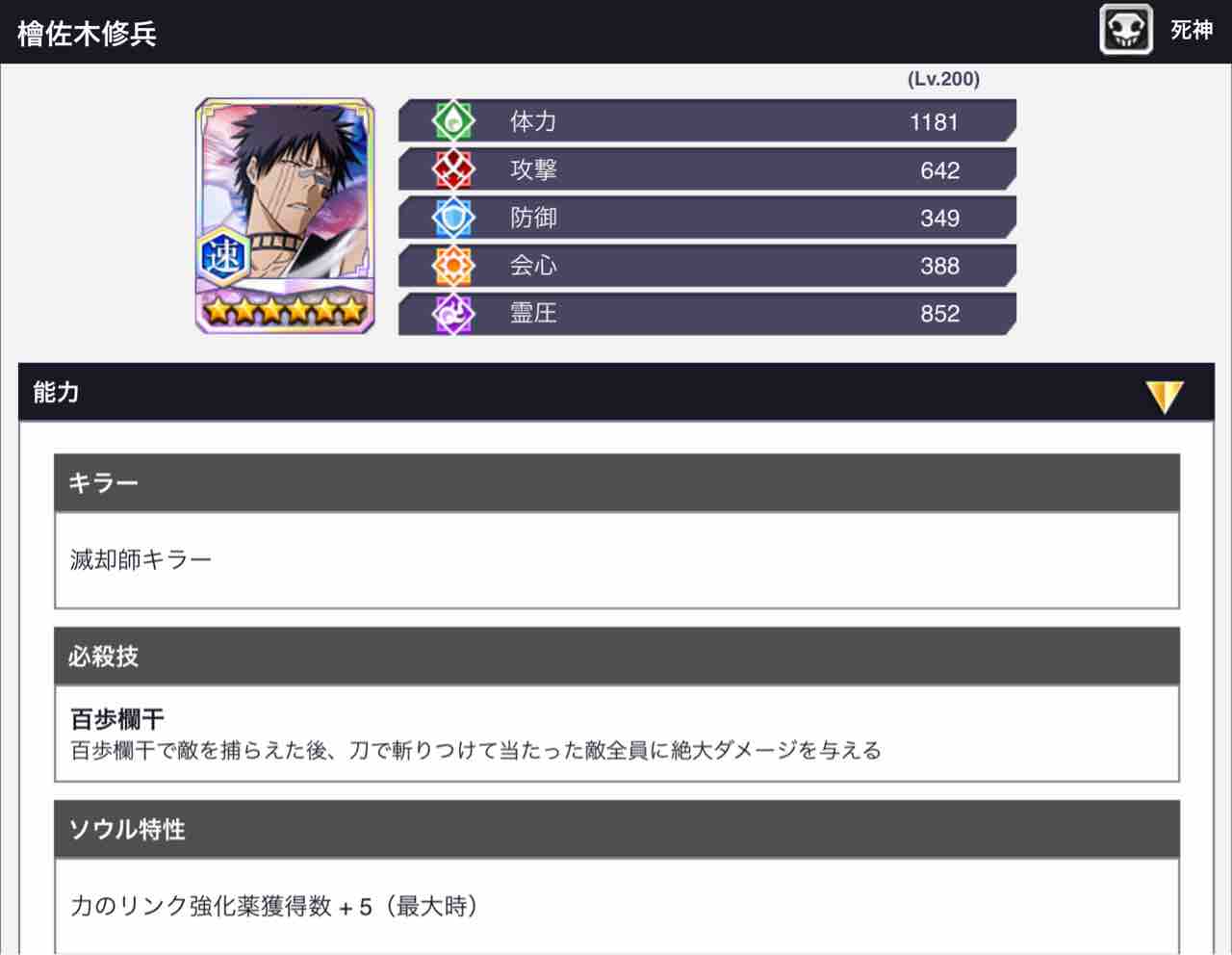 必殺技レベル5 ①攻撃 ②会心 ③体力 ④防御 ⑤霊圧