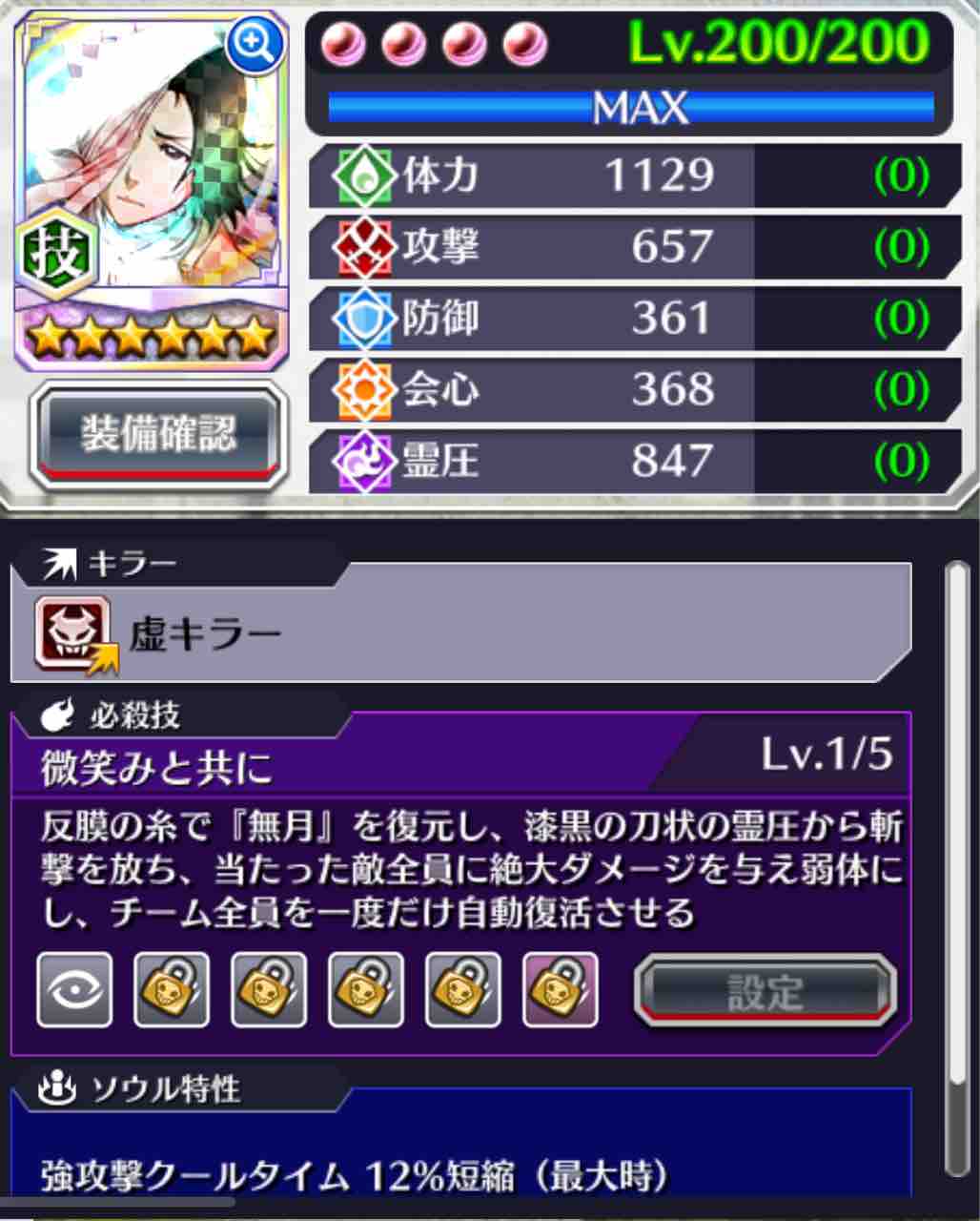 必殺技レベル5 ①霊圧 ②会心 ③攻撃 ④体力 ⑤防御