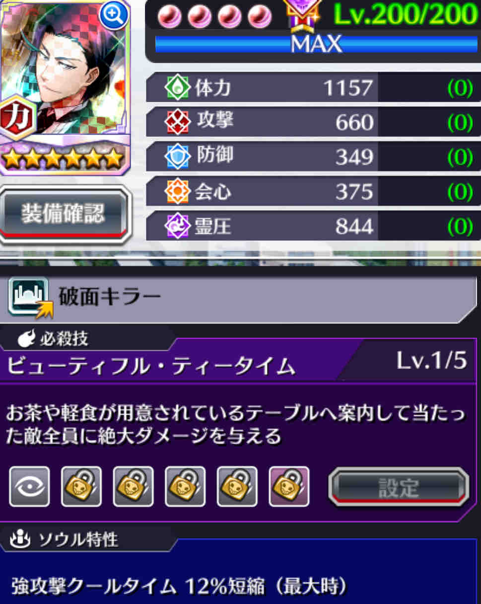 必殺技レベル5 ①霊圧 ②会心 ③攻撃 ④体力 ⑤防御
