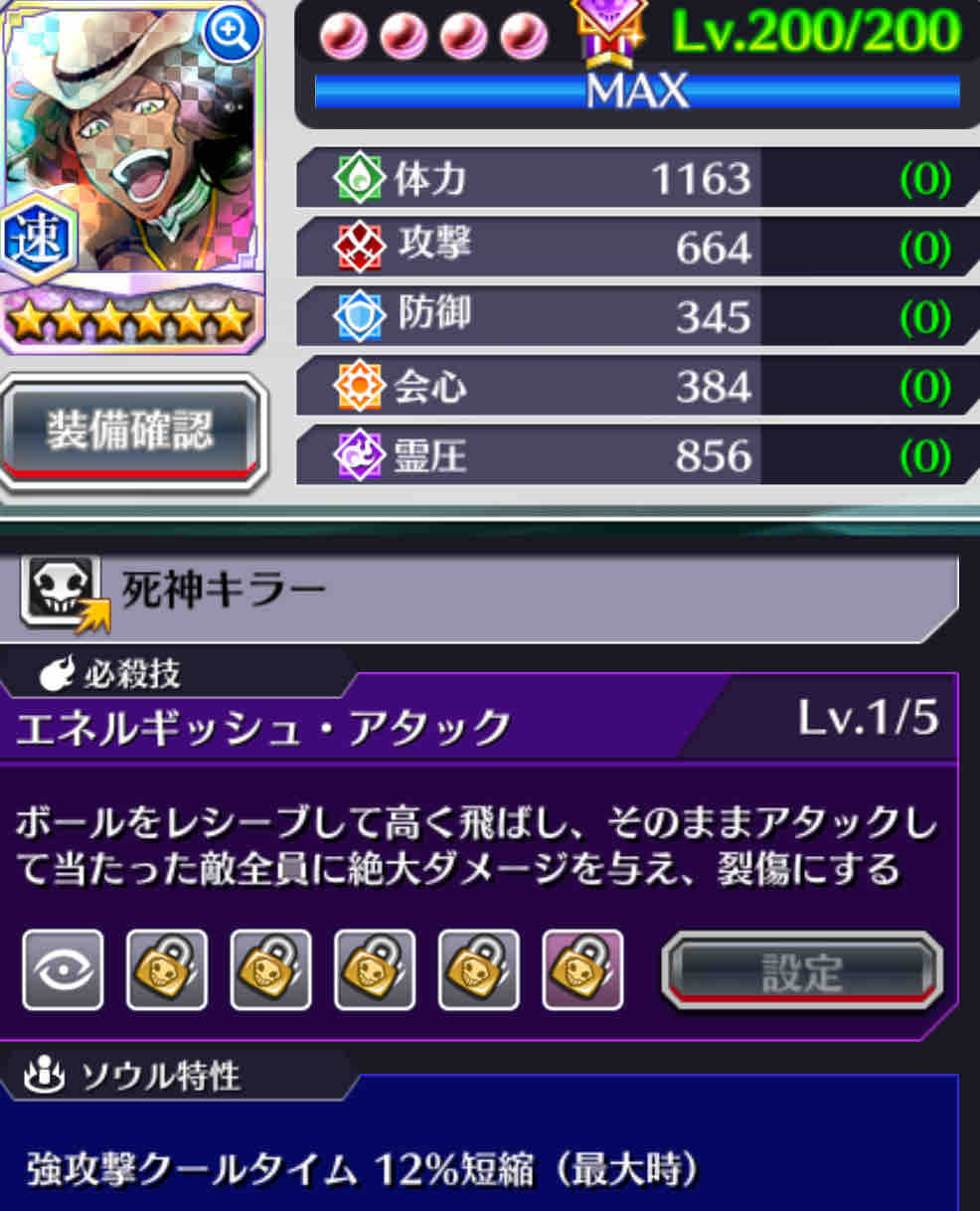 必殺技レベル4 ①霊圧 ②会心 ③攻撃 ④体力