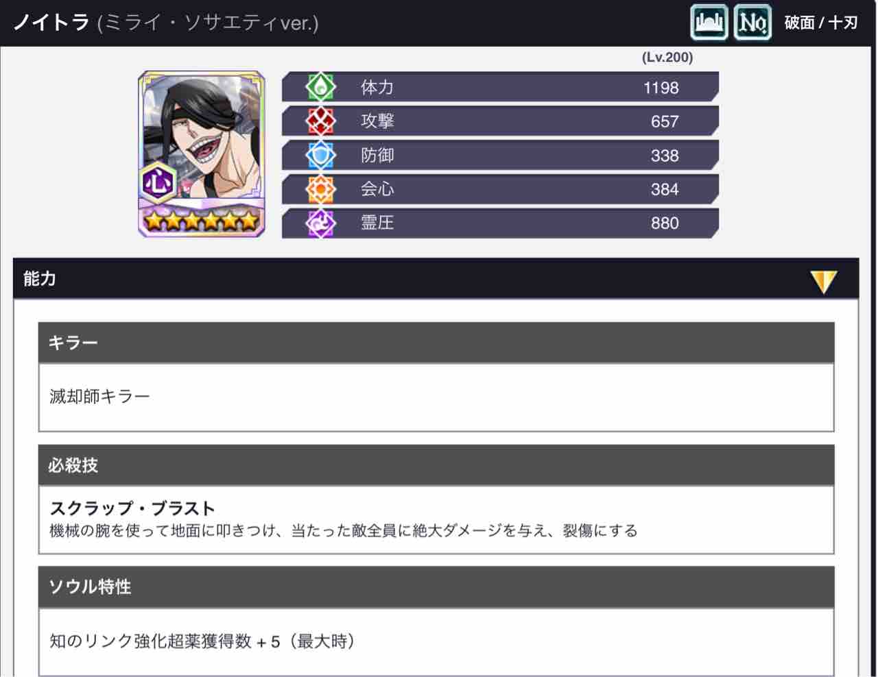 複数枚持ちをしていると、ソロの「継承の試練」において、メインにノイトラ、松本乱菊(水着/2023)、東仙要(小説SAFWYコラボ)のサブキャラにノイトラをキャラリンクする事で、さらに多くのリンク強化超薬を手にすることが出来ます。
