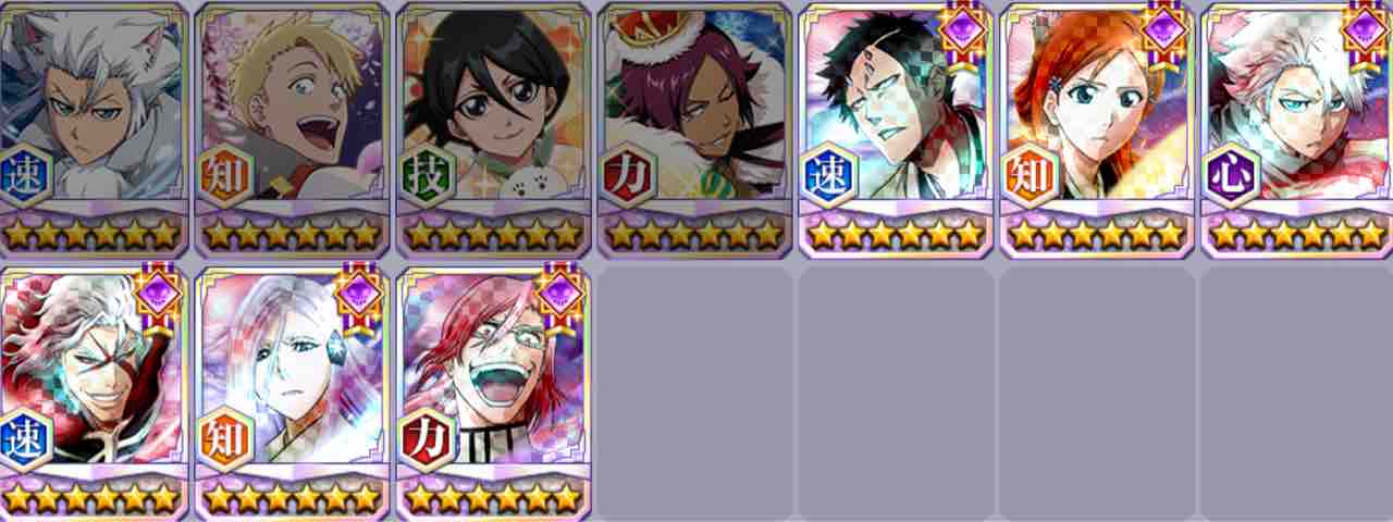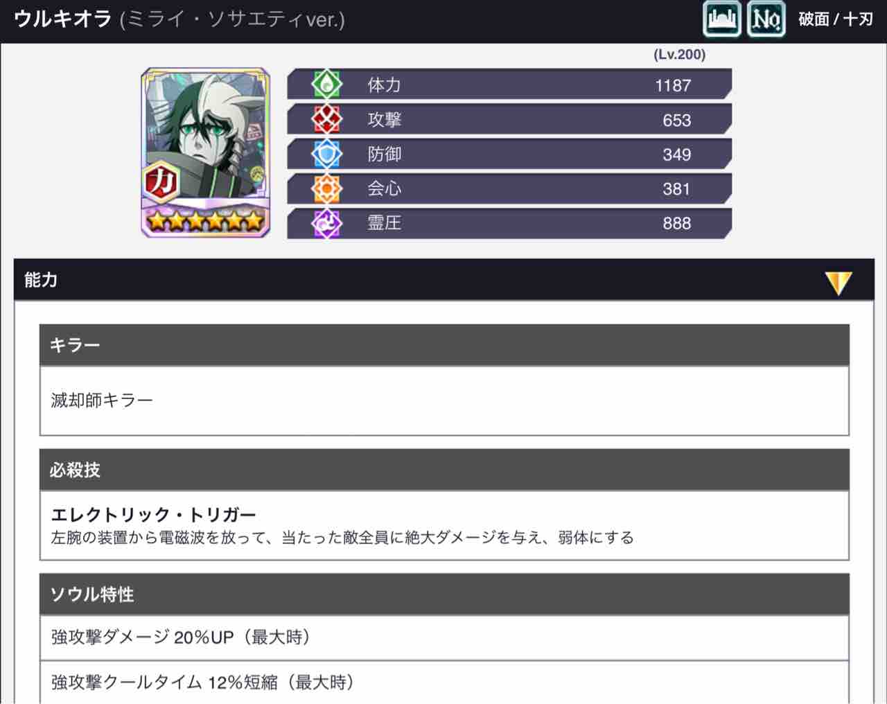 またそれに起因して滅却師キラー青のメインキャラは、まだウルフ日番谷が優勢。状態異常罠設置(氷結)+一定時間連続攻撃(氷結)により、敵を拘束。また基礎アビリティに青攻撃ダメージupやキラー効果upもあり優秀。ウルキオラ(ミライ)のダメージ倍率の修正に期待するしかありません。