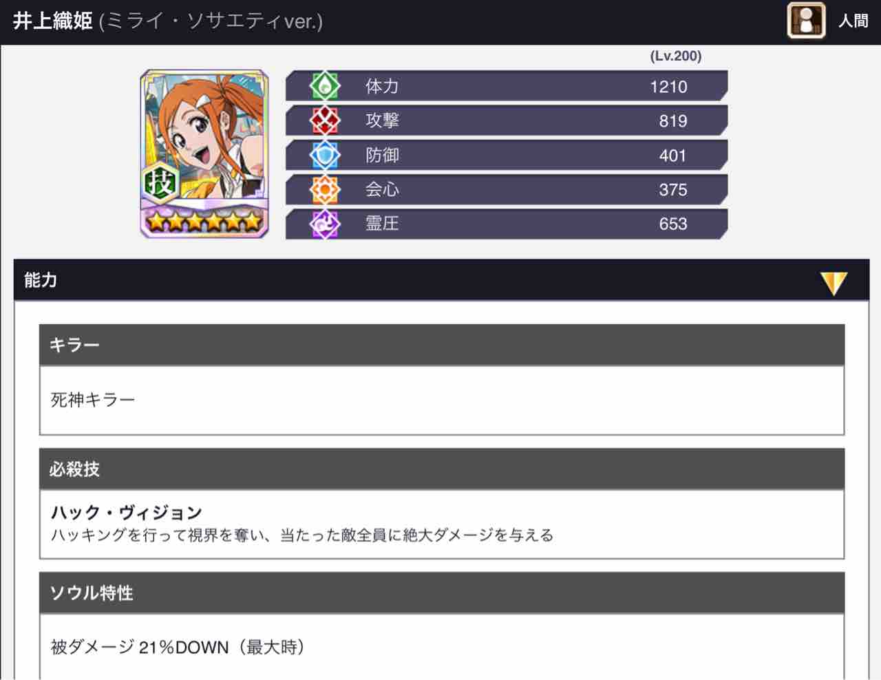 とは言え、井上織姫は【状態異常がない】点も、メインキャラの状態異常攻撃を邪魔しないので、グルバト的にはOKな気もします。