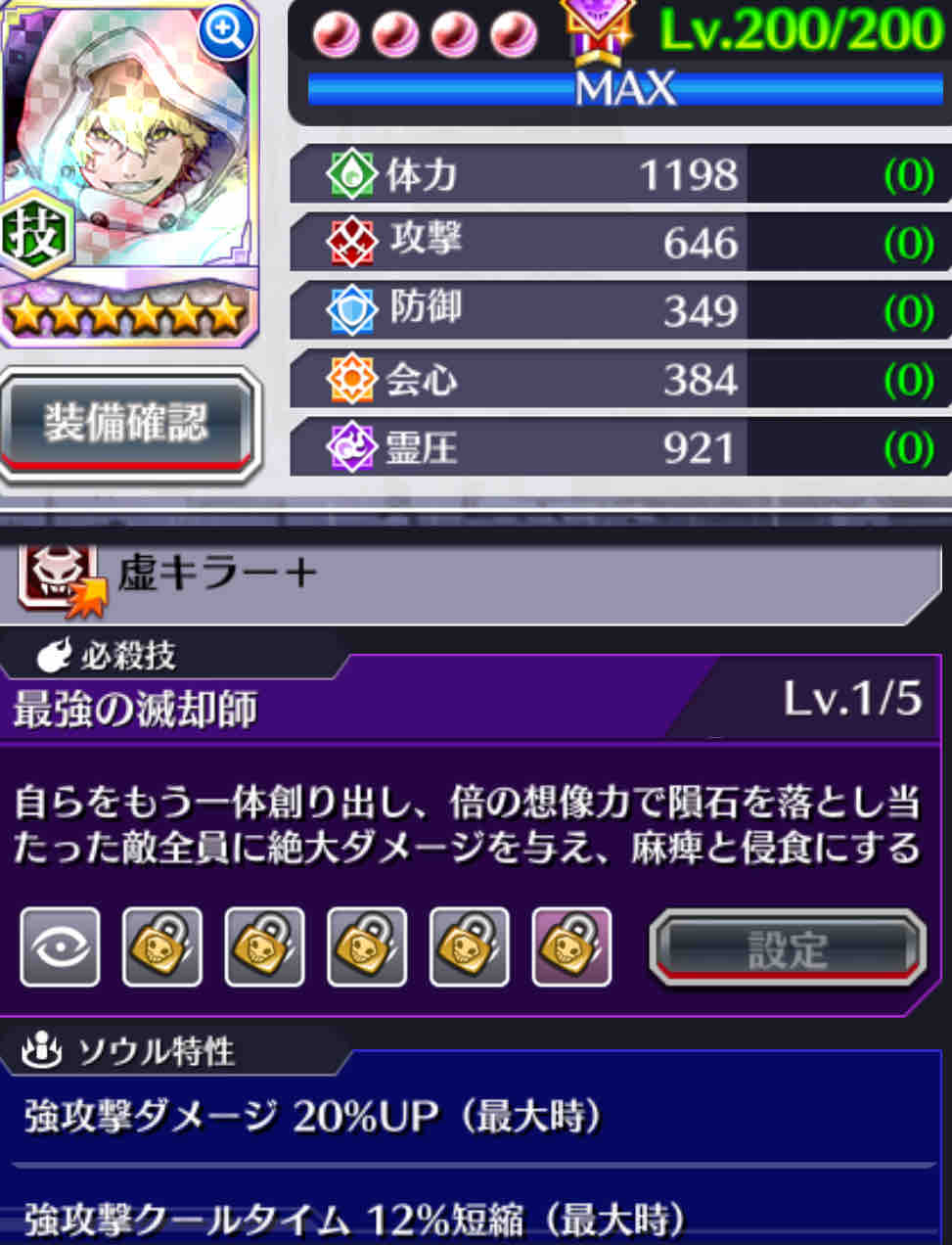 必殺技レベル4 ①霊圧 ②会心 ③攻撃 ④体力