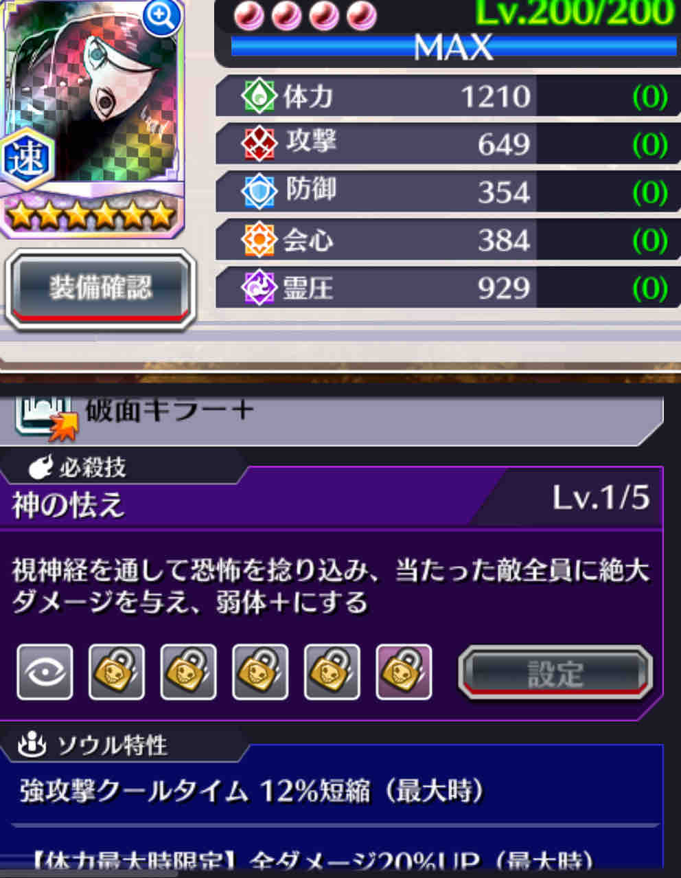 必殺技レベル4 ①霊圧 ②会心 ③攻撃 ④体力