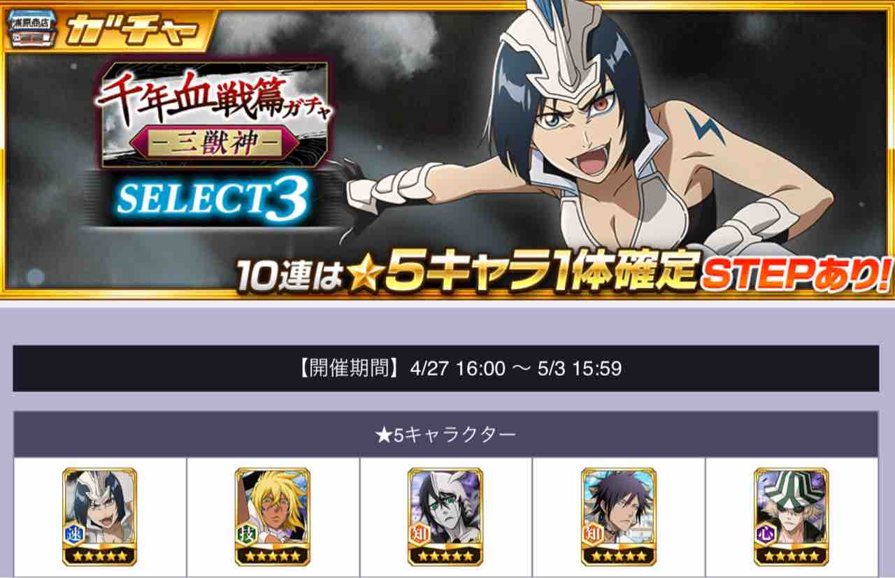 【千年血戦篇プライズガチャ -三獣神-】についてのものとなります。