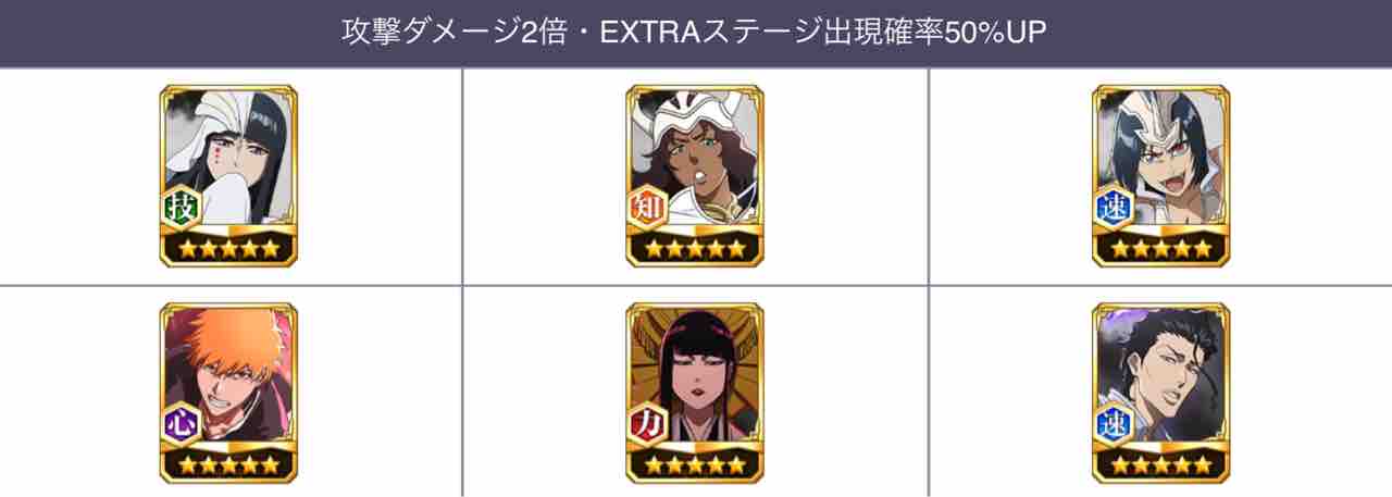 ※50%upのキャラクター4人で出撃した場合、200%upとなりEXステージの出現確率が3倍になります。