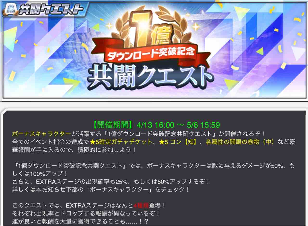 【1億ダウンロード突破記念共闘クエスト】に関するものです。