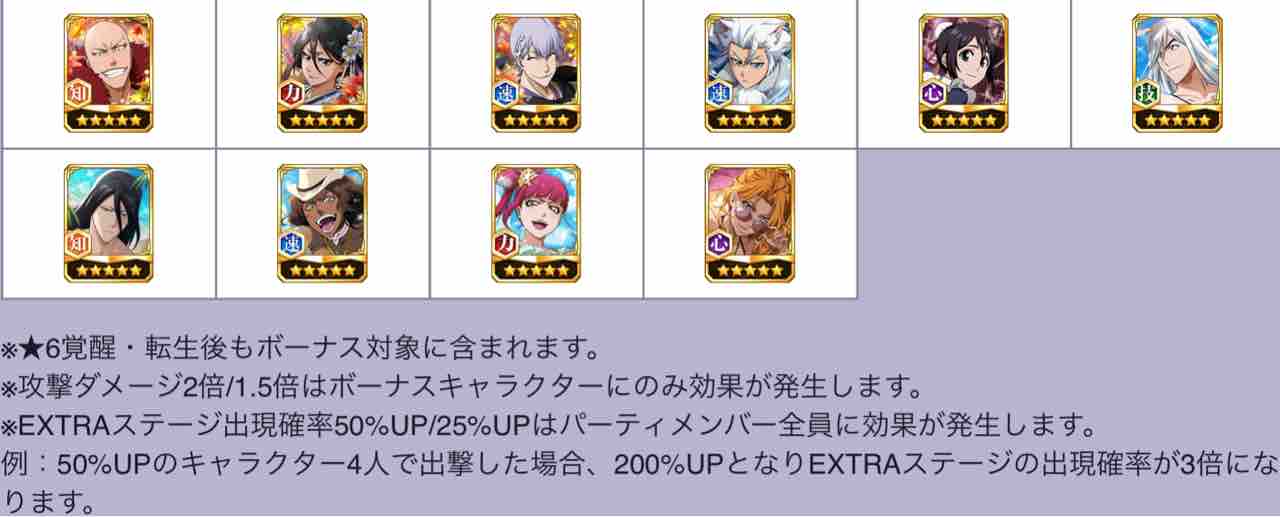 【EX25%up】AA グリムジョー(Xmas/2024)、雛森桃(ハロウィン/2023)、浮竹十四郎(水着/2023)、ミラ・ローズ(水着/2023)、毒ヶ峰リルカ(水着/2023)