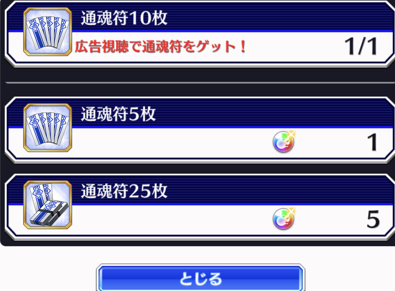 行き方は【ガチャ・ショップ】→【ショップ】→【通魂符を購入】で上記画像が現れます。