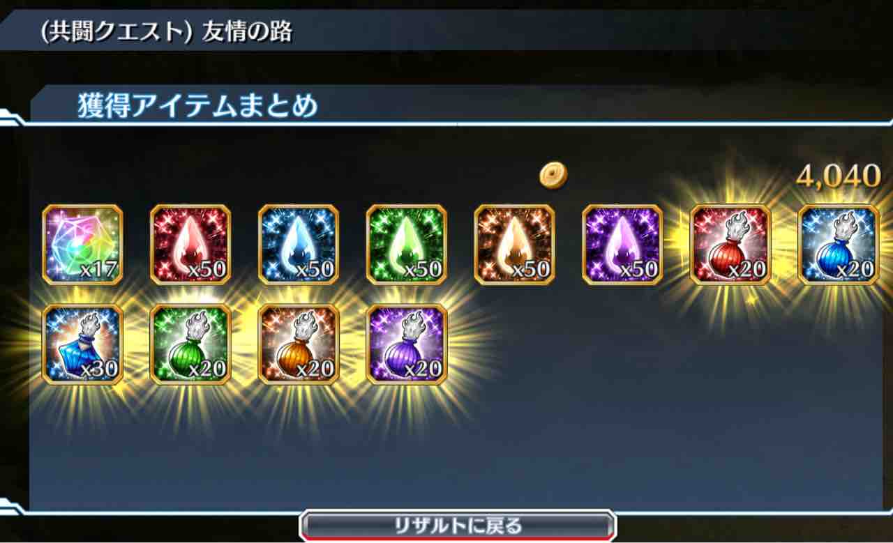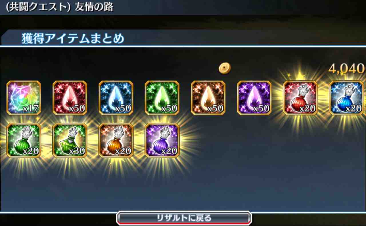 環ドロップ量183%upキャラ×4人で「環の試練」をクリアした際の報酬です。