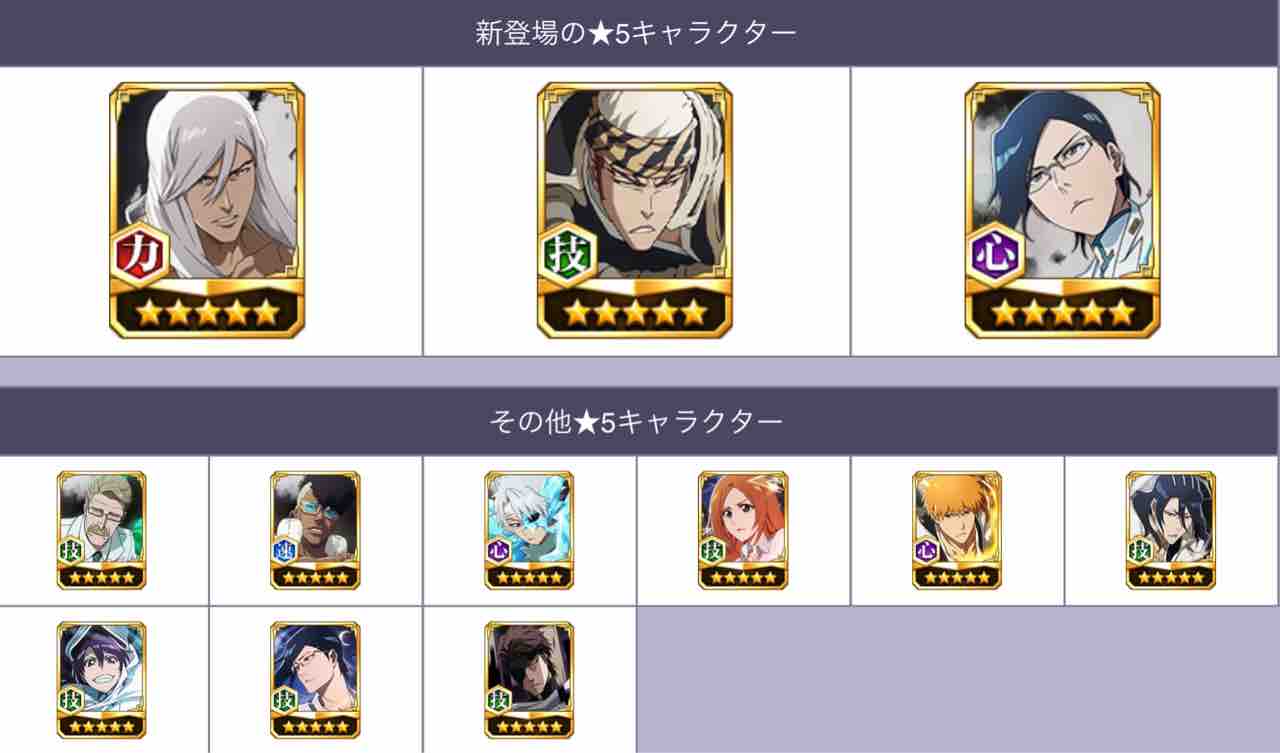 必殺技レベル5 ①攻撃 ②会心 ③防御 ④体力 ⑤霊圧